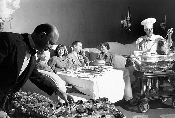 Original caption: Diners in the fabulous Pump Room of Ambassador East, however, think little of paying $10 for lunch.